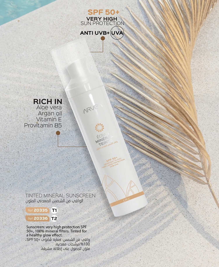 يجمع واقي ARVEA Tinted Mineral Screen SPF 50+ بين مرشحين معدنيين، أكسيد الزنك وثاني أكسيد التيتانيوم، لتوفير حماية معززة من أشعة الشمس ضد الأشعة فوق البنفسجية الطويلة والمتوسطة. بفضل قوامه الخفيف وسهل التوزيع، يوفر هذا الكريم الملون تغطية خفيفة إلى متوسطة. كما أنه يوفر فوائد الترطيب والتغذية ومضادات الأكسدة بفضل تركيبة غنية بالصبار وزيت الأرغان العضوي وبروفيتامين B5 وفيتامين E. وبفضل ظلاله المختلفة، فإن هذه الشاشة مناسبة لمجموعة واسعة من ألوان البشرة. كما أنه مقاوم للماء لتوفير الحماية المثلى.