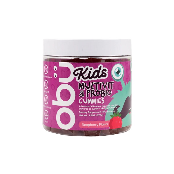 Obu Kids Multivitamin & Probiotic Raspberry Flavor 90 Gummies Kuwait. A blend of vitamins, minerals and live cultures to support children’s health. Supports strong and healthy bones. Fuels brain health and cognitive development. Encourages a healthy digestive system. Boosts energy levels and metabolism. Strengthens the immune system. Nurtures hair, skin, and nails health. Assists in overall well-being and growth.